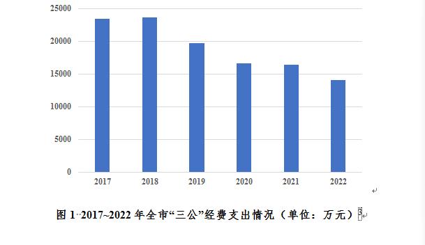 部門決算是指各部門依據國家有關法律法規規定及其履行職能情況編制,反映部門所有預算收支和結余執行結果及績效等情況的綜合性年度報告。其中“三公”經費與“兩費”的填列口徑在2017~2021年度均為單位使用一般公共預算撥款安排的支出,2022年度變更為單位使用財政撥款安排的支出。按照中央和省關于厲行節約,壓減一般性支出的要求,我市嚴控“三公”經費,強化“三公”經費預算管理,把牢“三公”經費預算執行關,牢固樹立“過緊日子”的意識,求真務實做好各項工作。從決算數據看,過去六年來,我市各級政府持續貫徹過“緊日子”、精打細算勤儉節約要求,“三公”經費支出呈下降趨勢,有效控制了行政成本,將過“緊日子”的要求落到了實處。2022年全市“三公”經費下降至14111.26萬元,與2017年相比,減少了9343.66萬元,壓減了近40%,占一般公共預算支出比重下降至0.34%。會議費和培訓費支出自2017年的16682.49萬元下降至2022年的8764.25萬元,壓減了7918.24萬元,下降了47.46%。我市切實在“兩費”支出上做減法,貫徹執行中央八項規定,厲行節約,勤儉辦事。