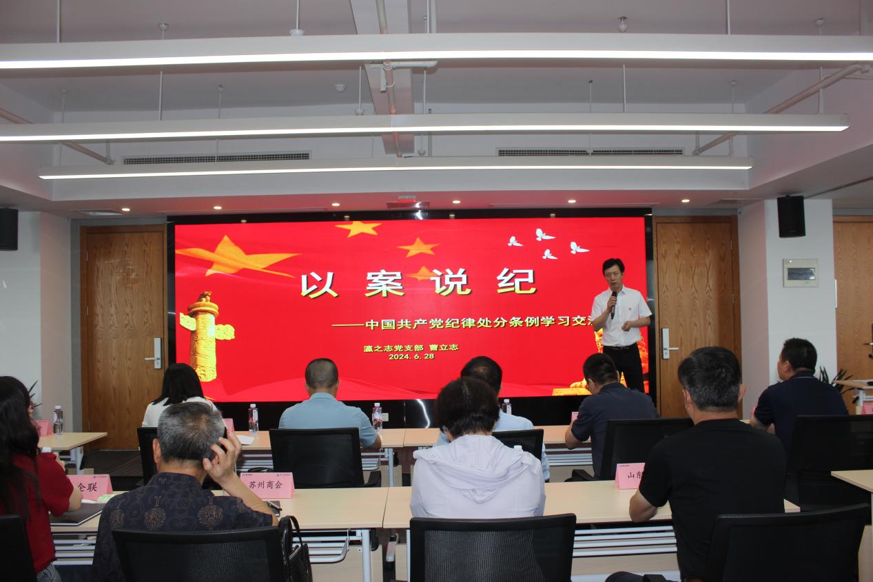 為慶祝中國共產黨成立103周年,進一步深化黨紀學習教育,2024年6月28日上午,市工商聯(總商會)舉辦6月份“學黨紀強黨性、擔使命建新功”主題黨日暨黨紀學習教育專題黨課活動,各直屬商協會黨組織負責人、市工商聯機關黨支部全體黨員共計四十余人參加,市委統戰部副部長、市工商聯黨組書記、市總商會黨委書記孫振東以“把握黨的紀律建設百年經驗啟示 推動‘兩個健康’事業高質量發展”為題,為全體黨員干部作了專題黨課輔導。